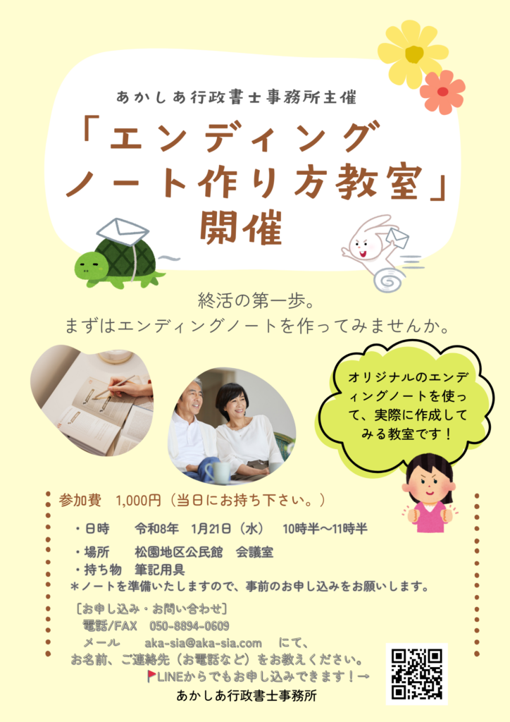 2025/12/19 令和8年1月21日(水)「エンディングノート作り方教室」を開催いたします!
